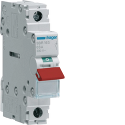 SKU: SBR164 HagerHager SBR164 1P 63A Switch Red Toggle 35Sq Terminal